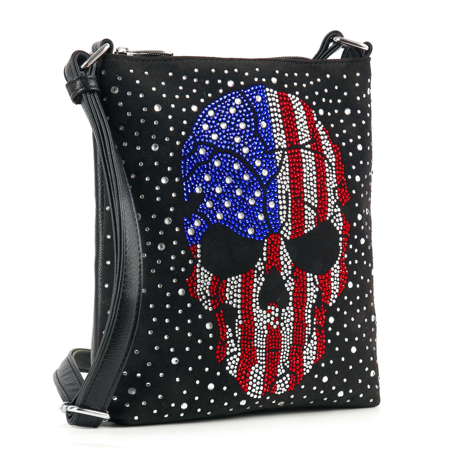 Spectacular American Flag Skull Rhinestone Crossbody Bag